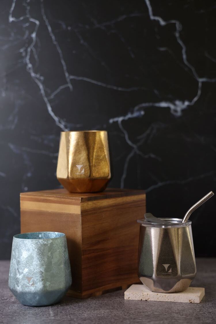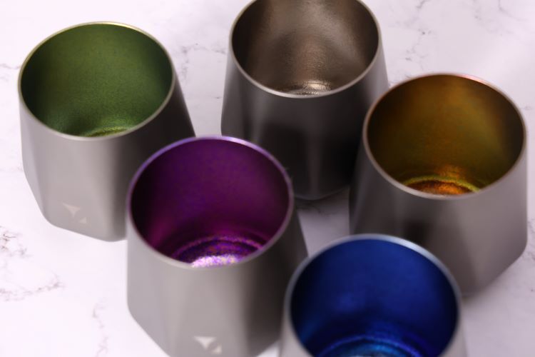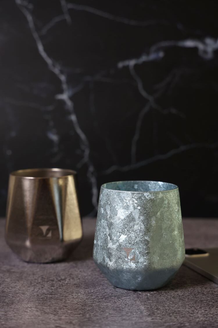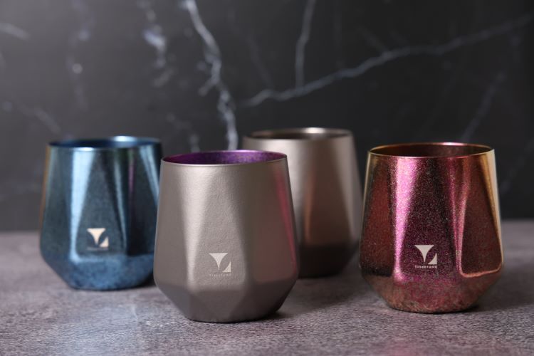 轉動杯身,純鈦特有的結晶光影在桌面緩緩流動,