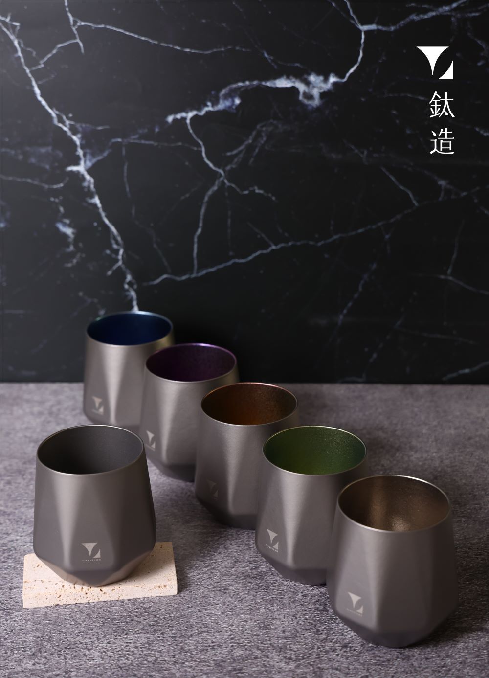 轉動杯身,純鈦特有的結晶光影在桌面緩緩流動,