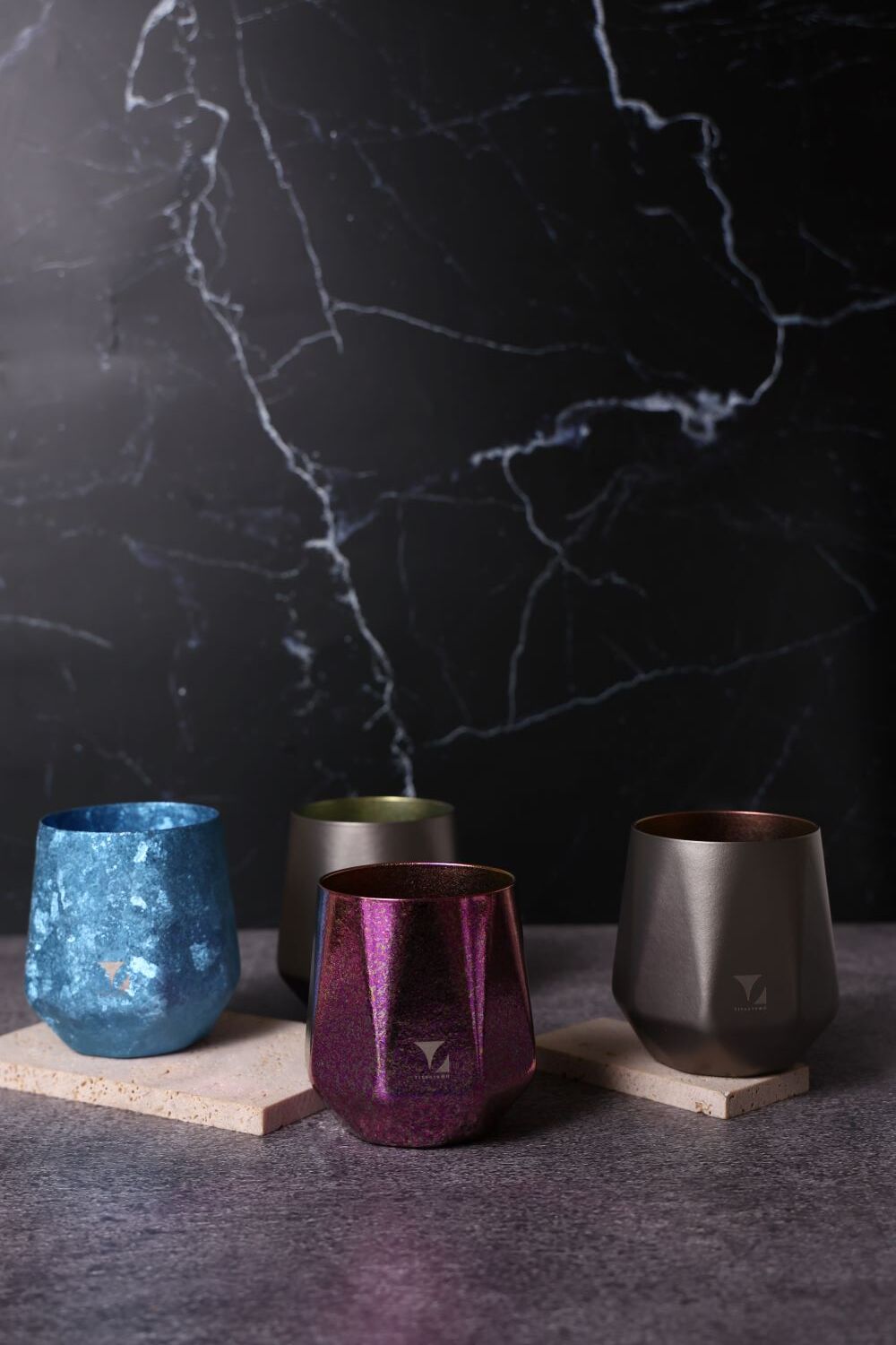 轉動杯身,純鈦特有的結晶光影在桌面緩緩流動,