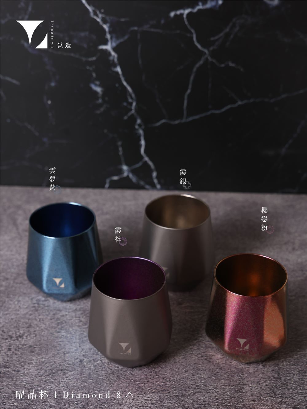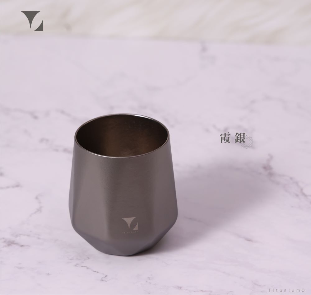 轉動杯身,純鈦特有的結晶光影在桌面緩緩流動,
