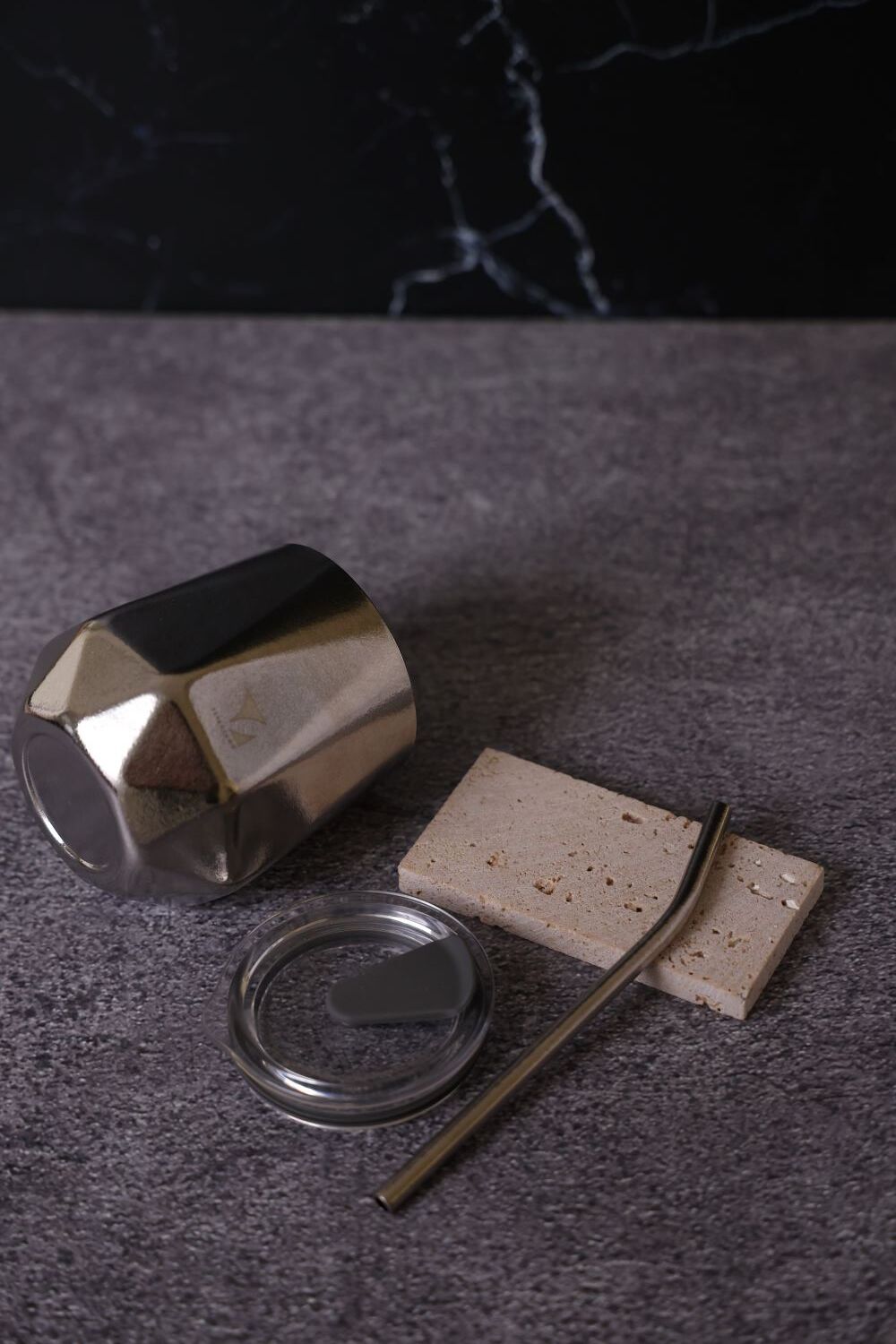 轉動杯身,純鈦特有的結晶光影在桌面緩緩流動,