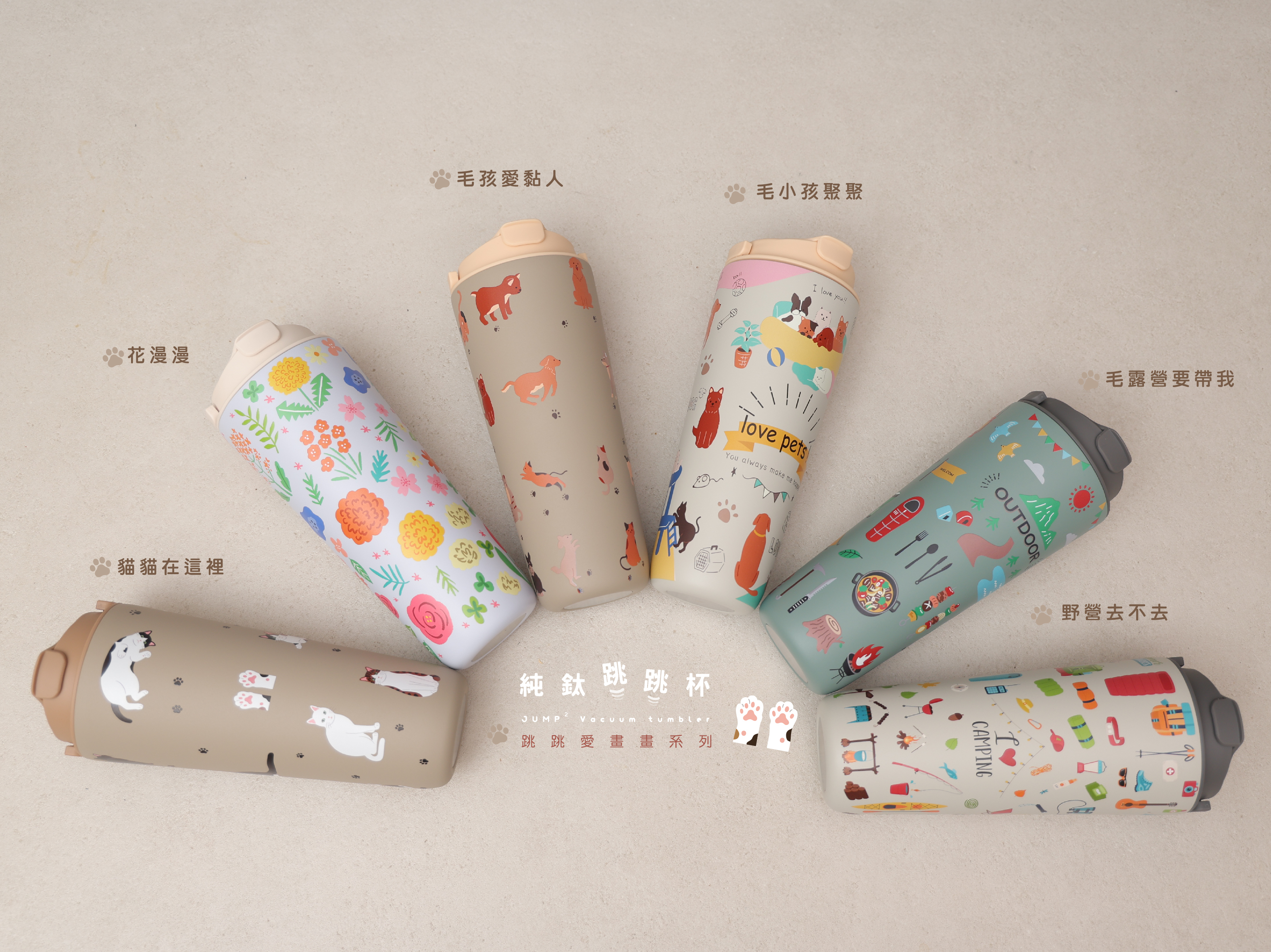 800ml純鈦跳跳杯|跳跳愛畫畫系列 |野營去不去X工業灰蓋