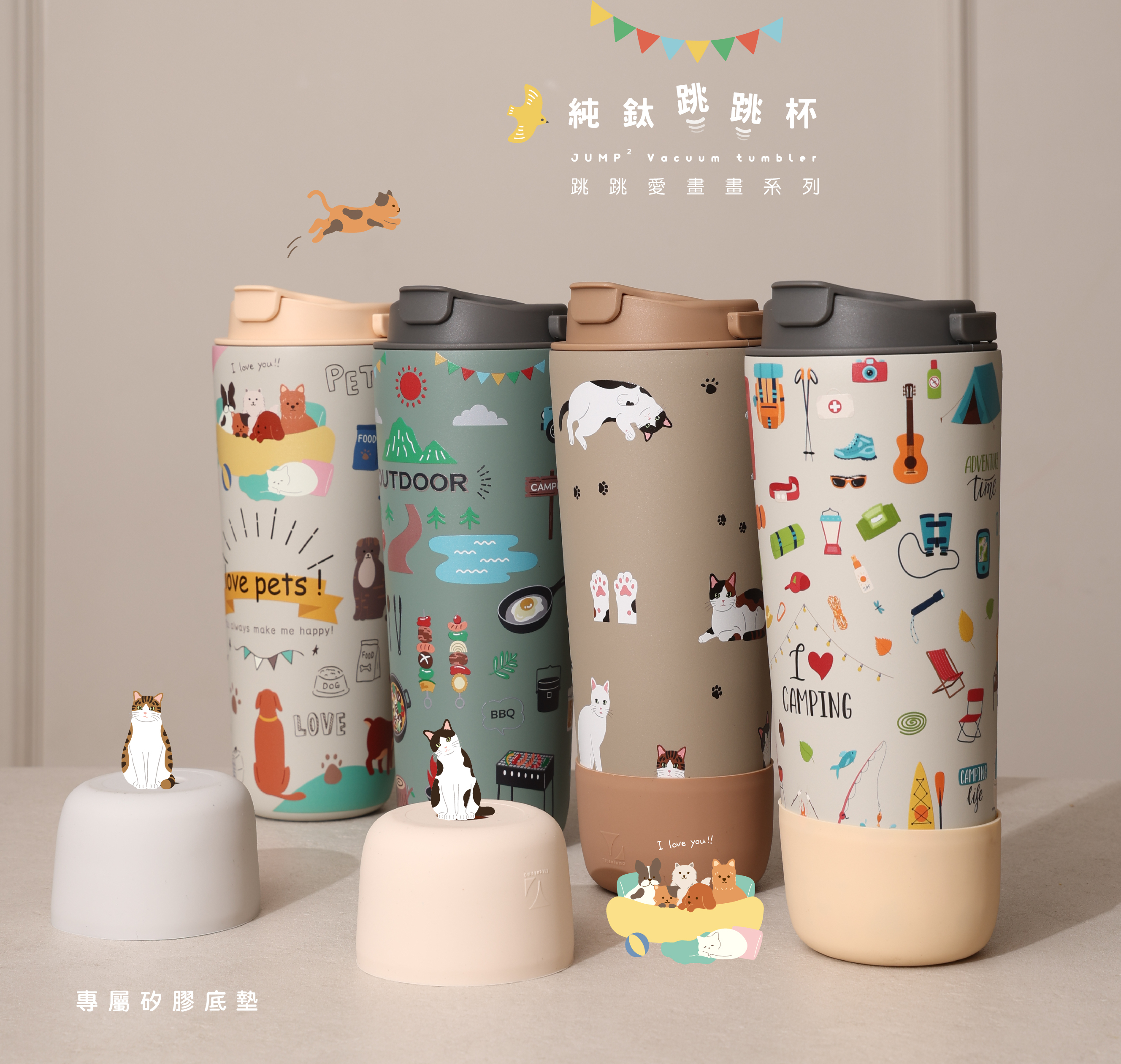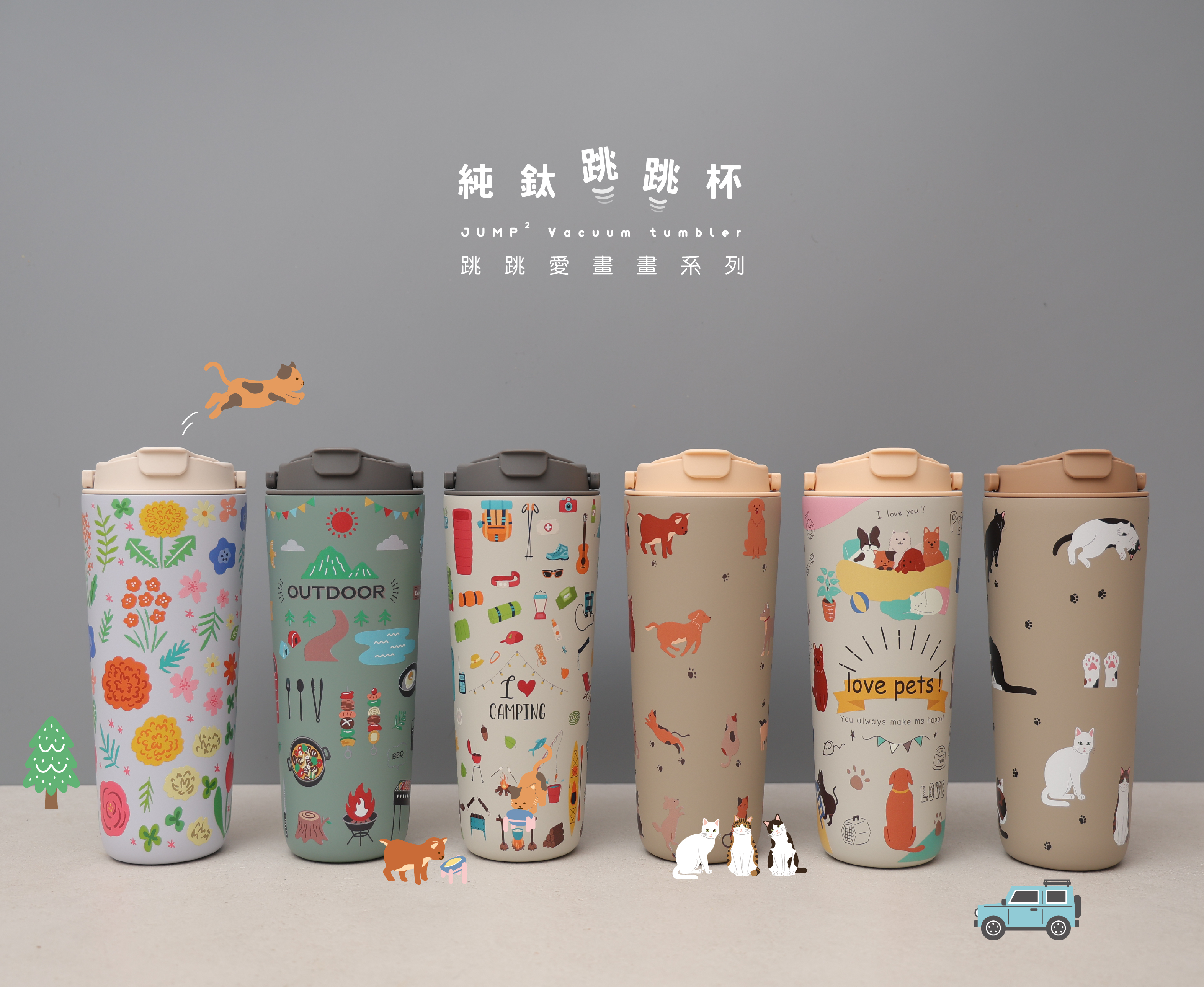800ml純鈦跳跳杯|跳跳愛畫畫系列 |毛小孩聚聚X小鵝黃蓋