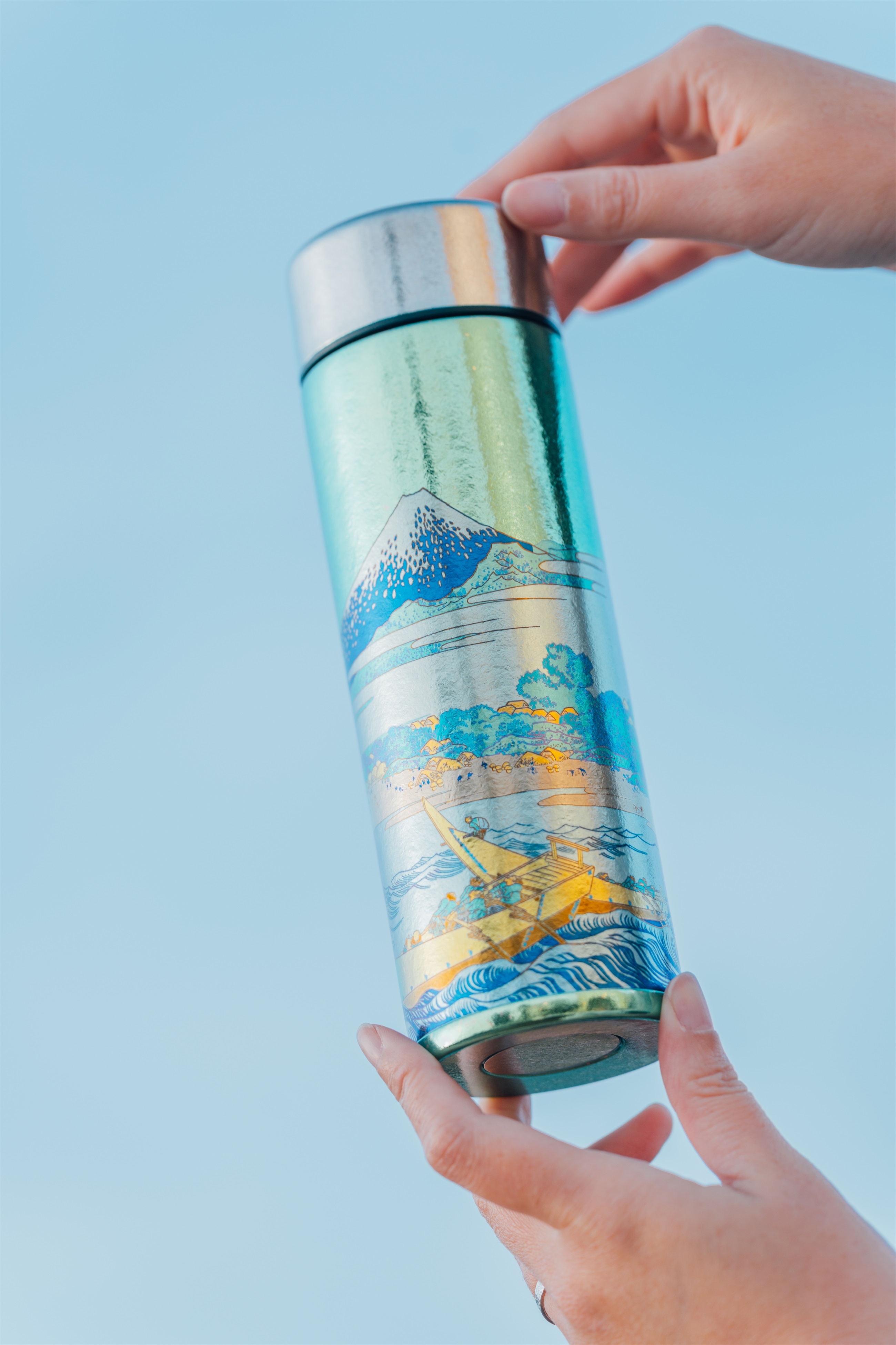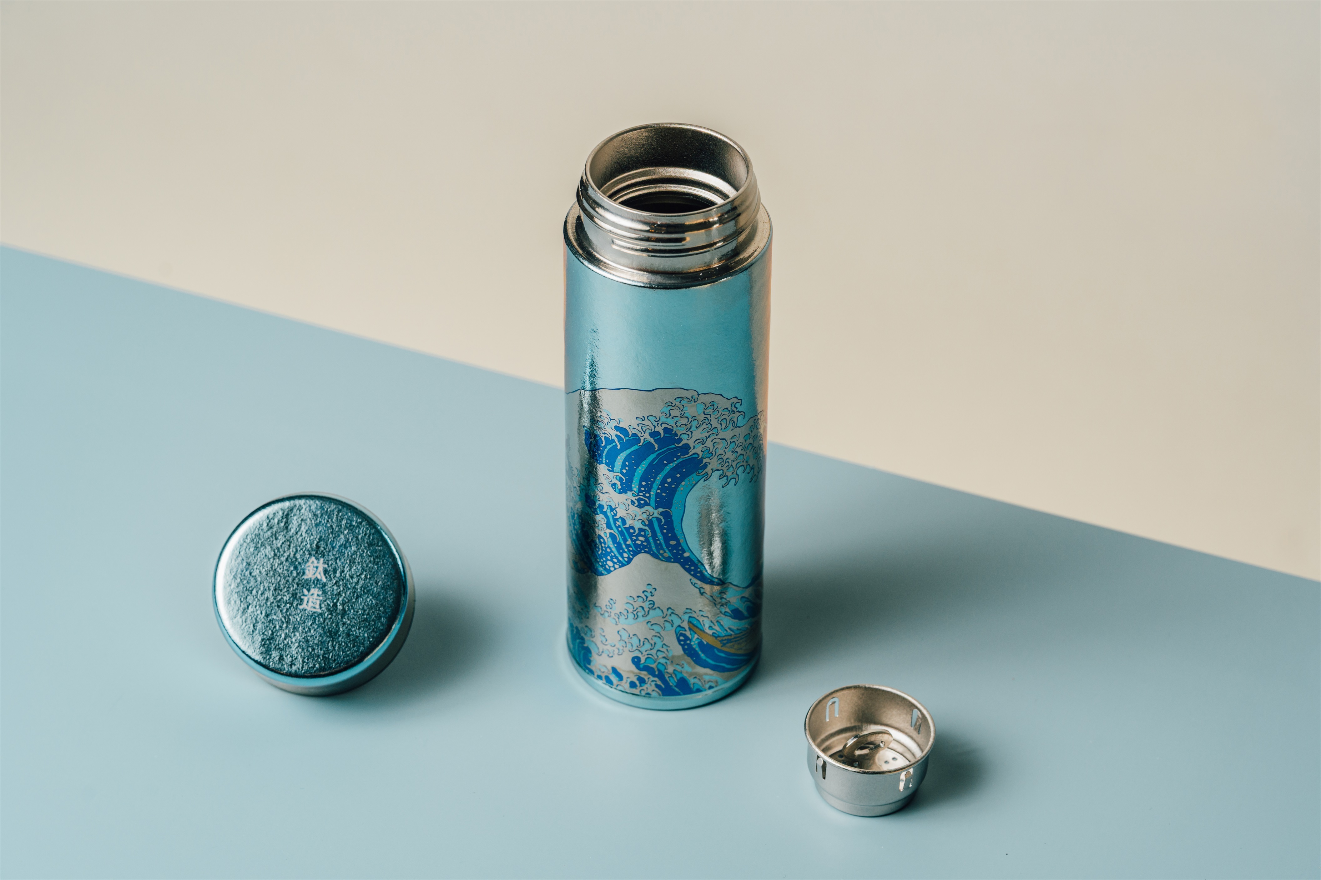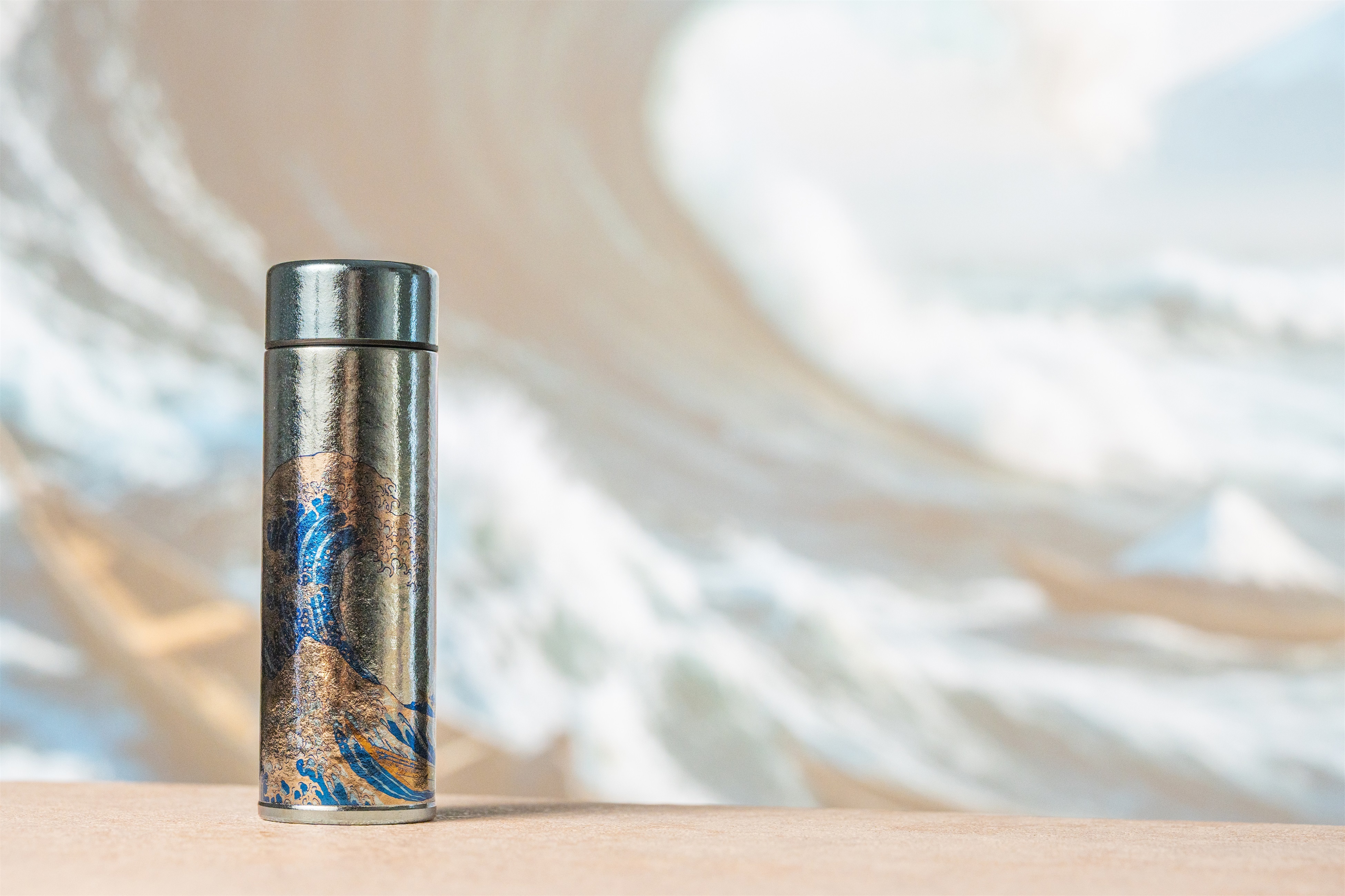 葛飾北齋巨浪定格在純鈦瓶身,