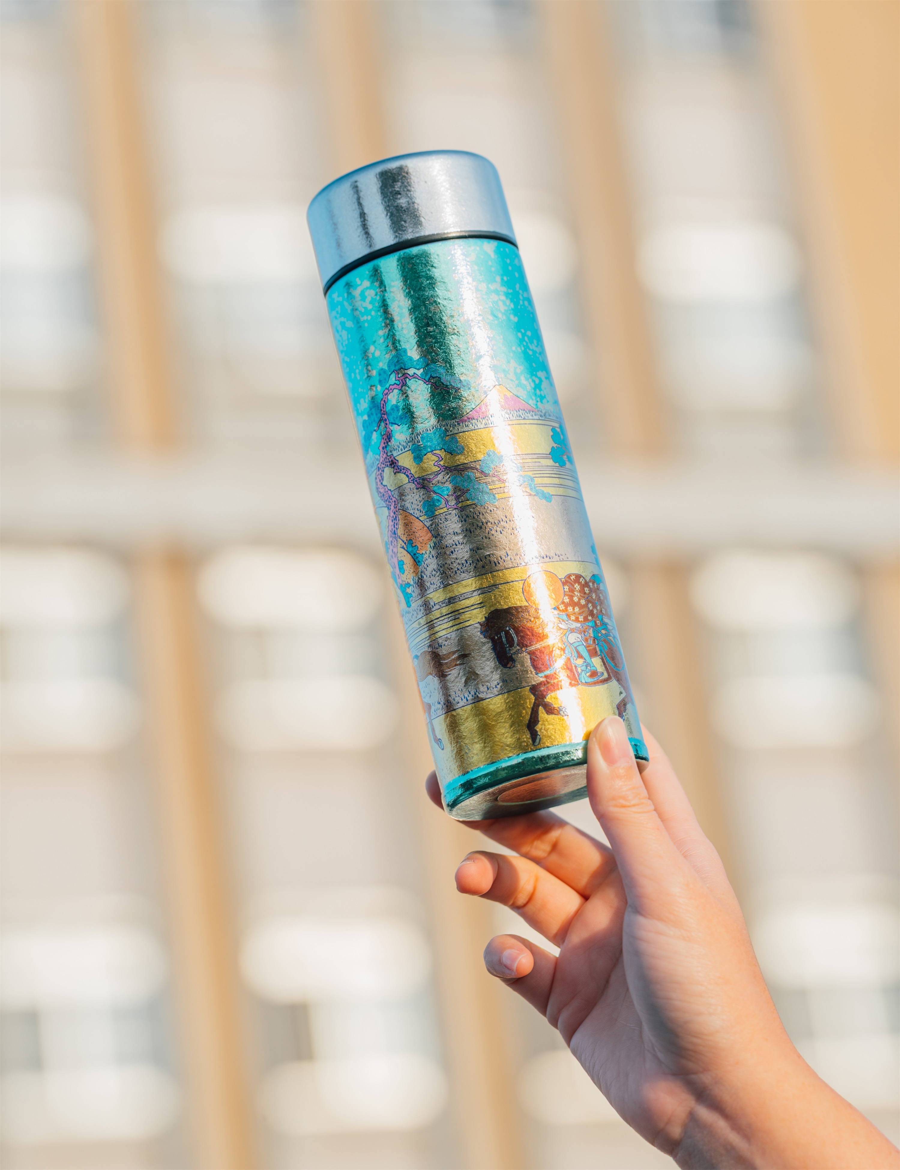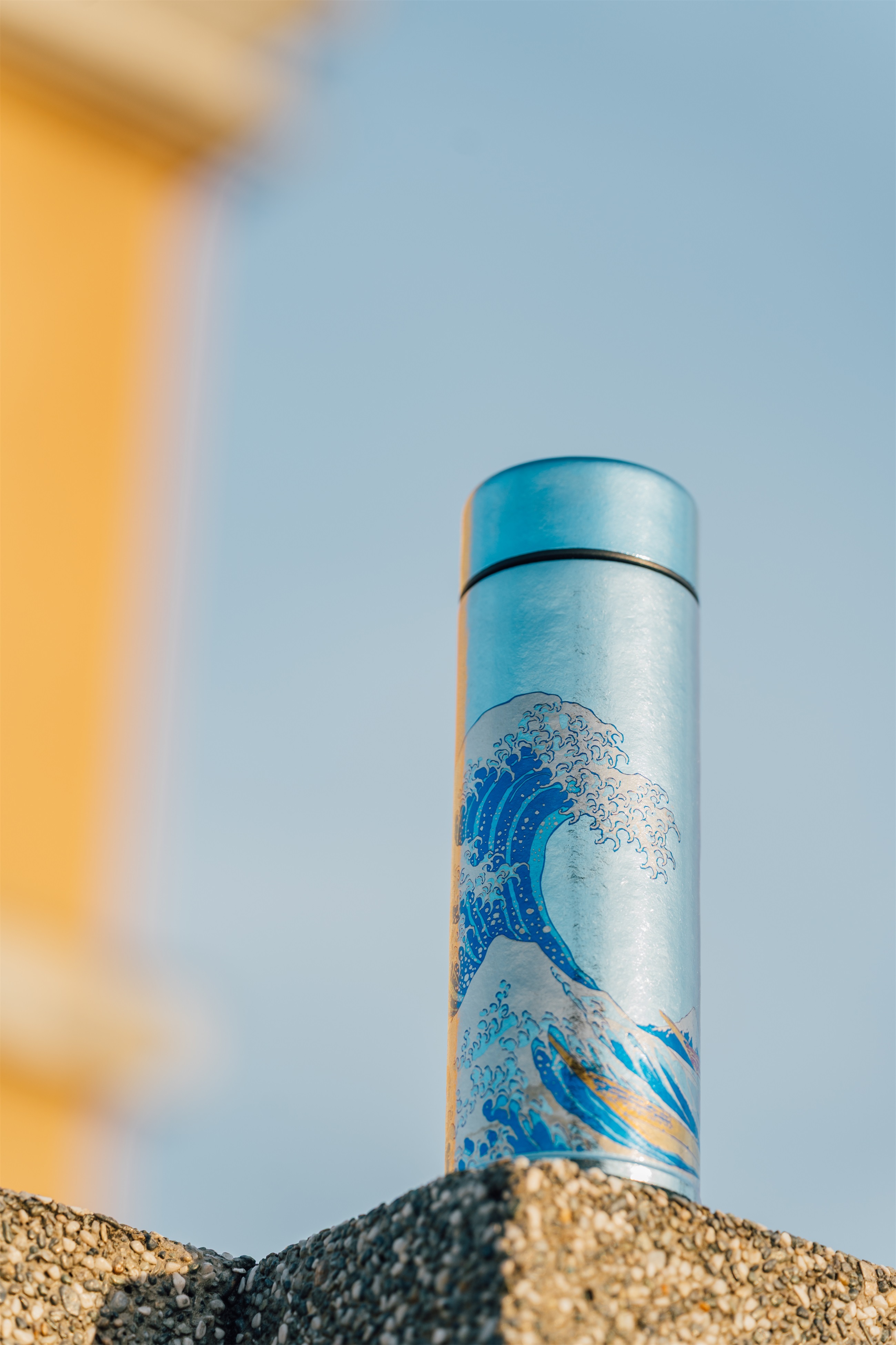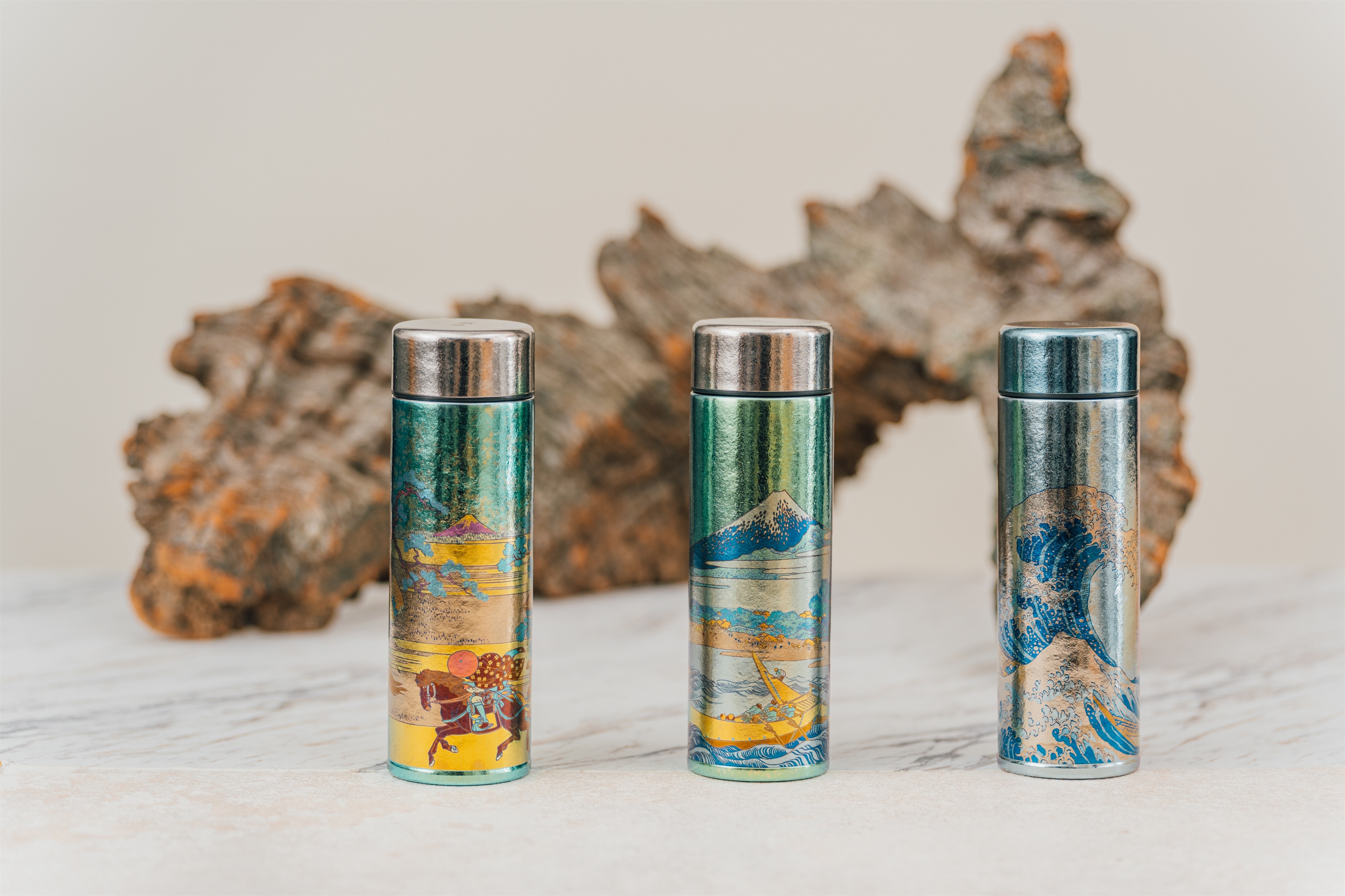 葛飾北齋巨浪定格在純鈦瓶身,