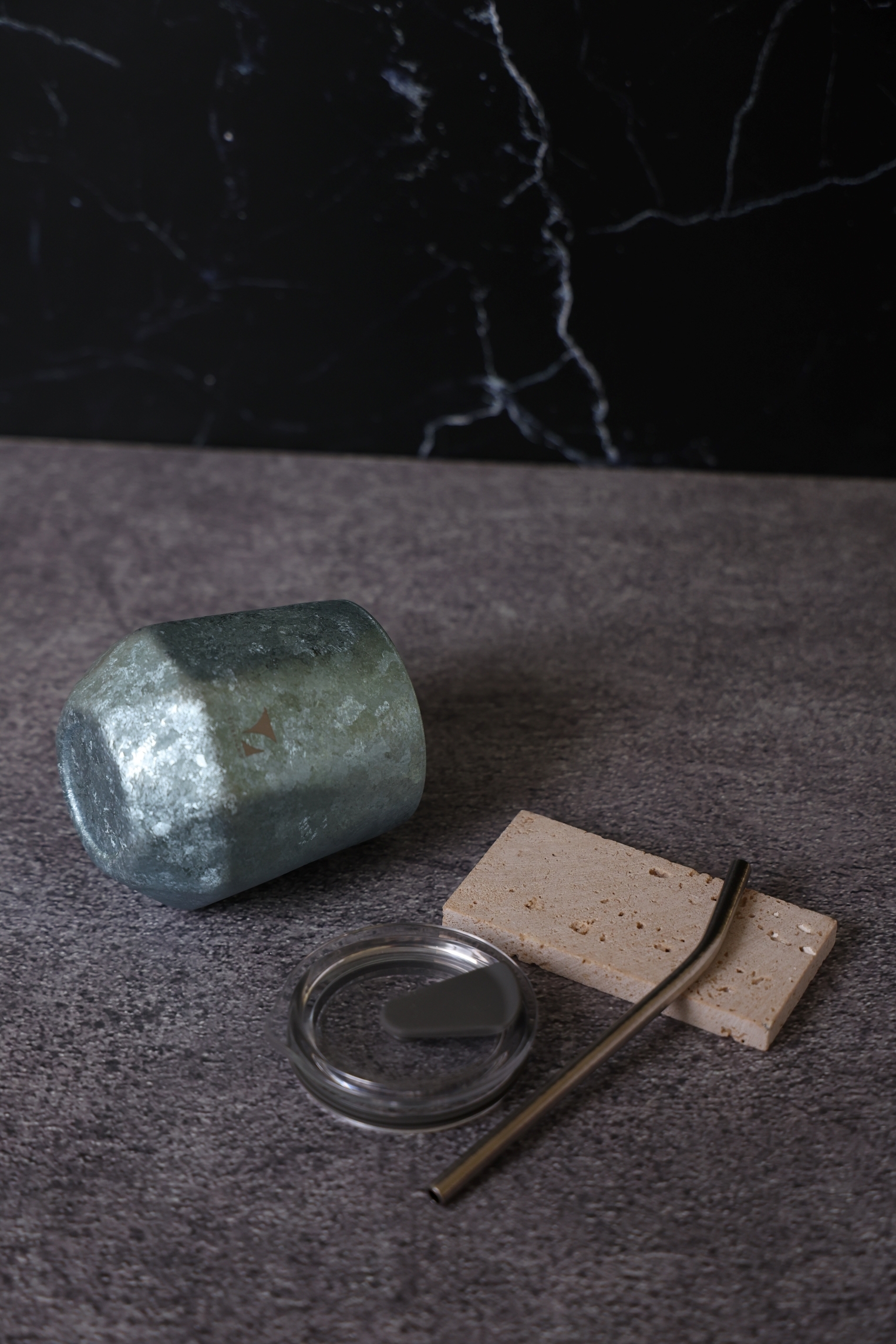 轉動杯身,純鈦特有的結晶光影在桌面緩緩流動,