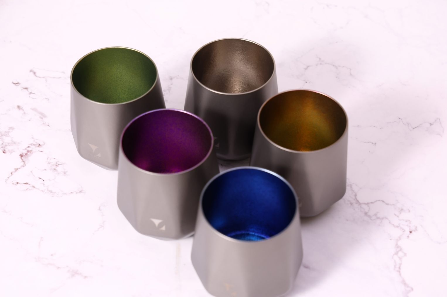 轉動杯身,純鈦特有的結晶光影在桌面緩緩流動,